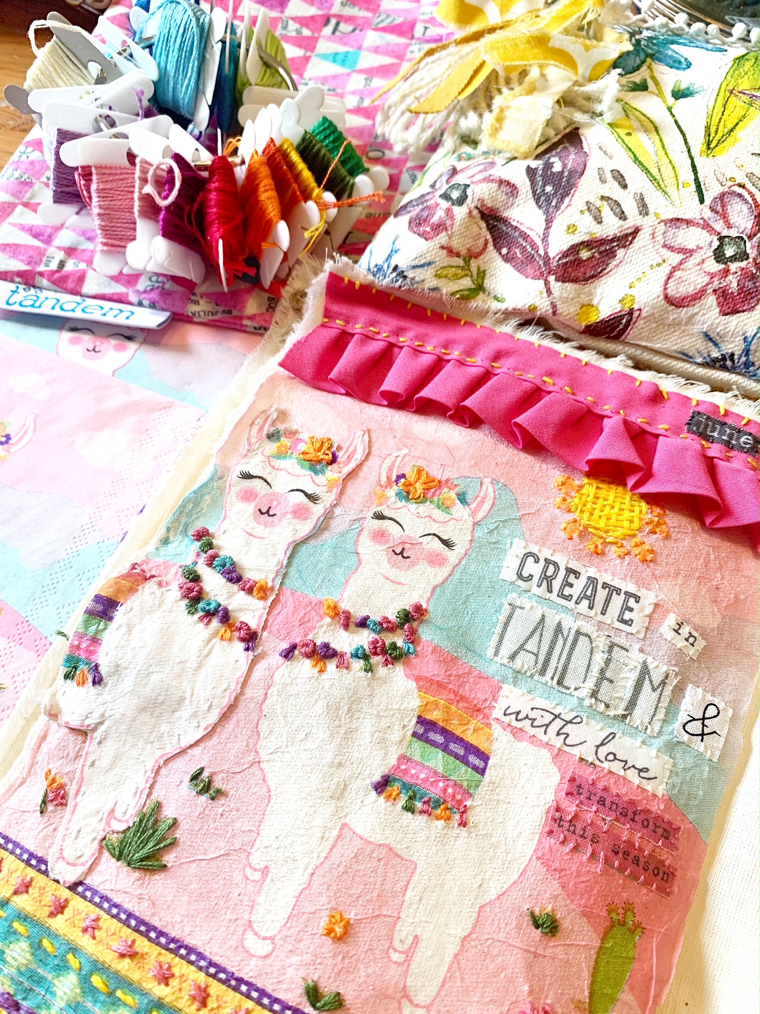I’ve been thinking a lot about this word over the past month. So it’s no surprise that I gravitated towards stitching an image in tandem… two are better than one. Inspired by a llama napkin, I used it as my base for my June #onestitchamonth.