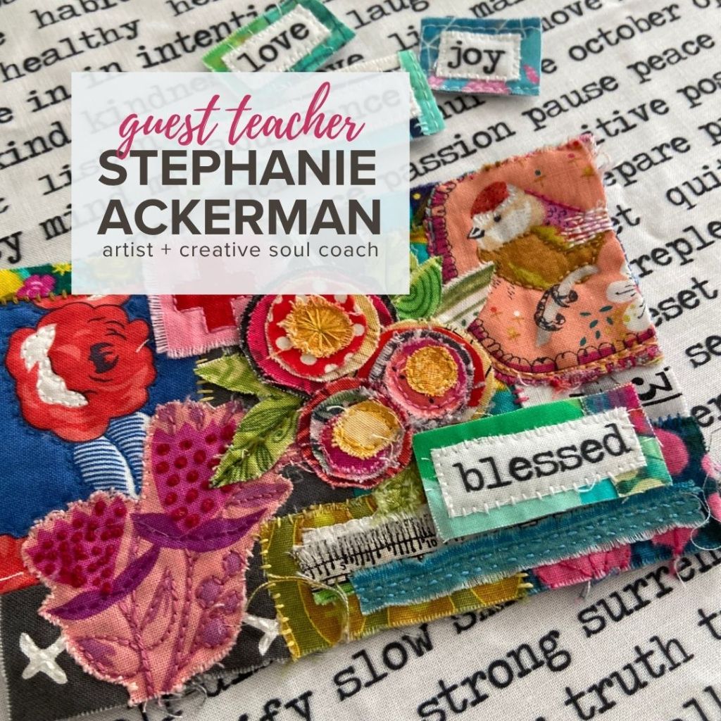 Come to the Sea of Grace. Develop a habit of prayer. Break your cycle of worry and action with stillness and surrender. Together, we’ll learn to slow our pace down while picking up the art form of slow stitching. We’ll put together a fabric prayer journal and stitch and pray what is on our hearts. We will learn to pray for ourselves and our loved ones. There is no prior art or stitching experience required. All supplies will be provided. New techniques and ways to integrate mixed media and textiles into your fabric journal will be introduced. You’ll learn fun techniques such as adding color to your fabric. making your own fabric washi tape, using stamps for your stitching, creating your own felt applique and slashing fabric… to name a few. Guest teachers include Stephanie Ackerman and Jean Pennington. Join us and begin stitching prayers into the fabric of your life in the new year!